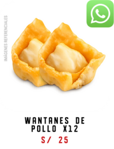 Doce wantanes preparados con la receta de la casa, con rellenod e pollo.